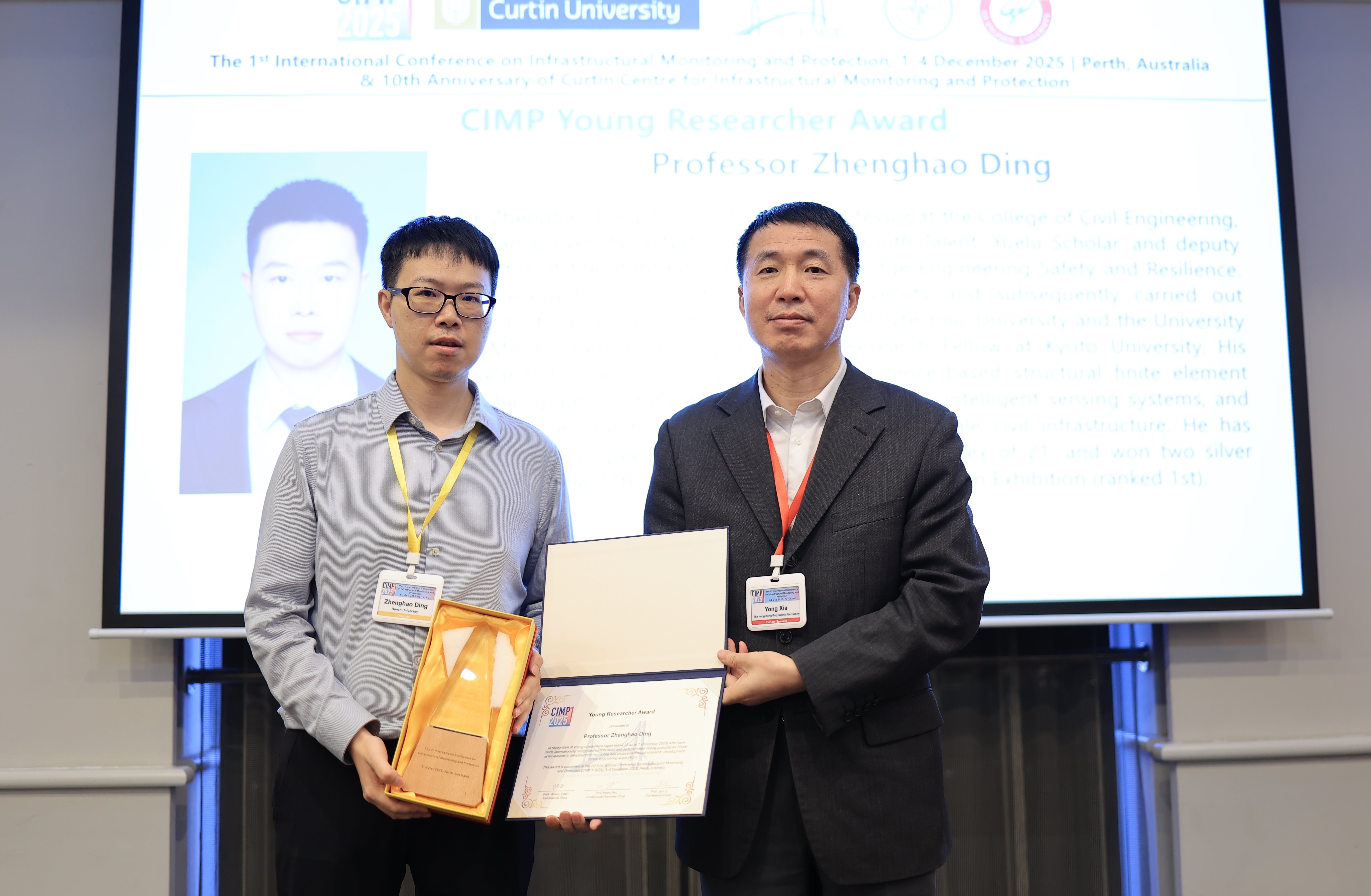 丁政豪教授荣获首届国际基础设施监测与防护会议青年研究者奖