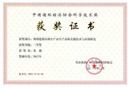 黄靓教授负责完成的《利用建筑垃圾再生产品的关键技术与应用研究》获得了中国循环经济协会科学技术奖三等奖(排名第一),为无码卡通