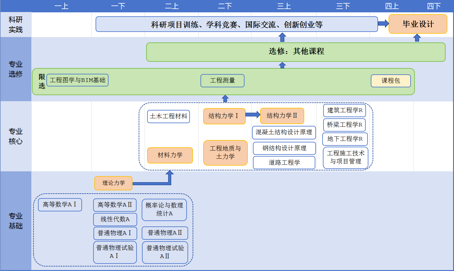 2. 学科知识:具备扎实的数学及自然科学基础知识,掌握宽厚的土木工程设计、建造施工、运维与管理等专业知识,具备适应土木工程领域人工智能发展和应用的相关基础知识储备。 |