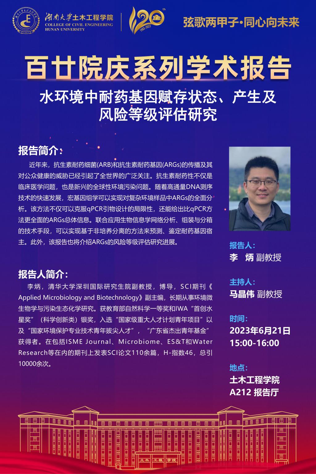 百廿院庆 学术报告|李炳:水环境中耐药基因赋存状态、产生及风险等级评估研究