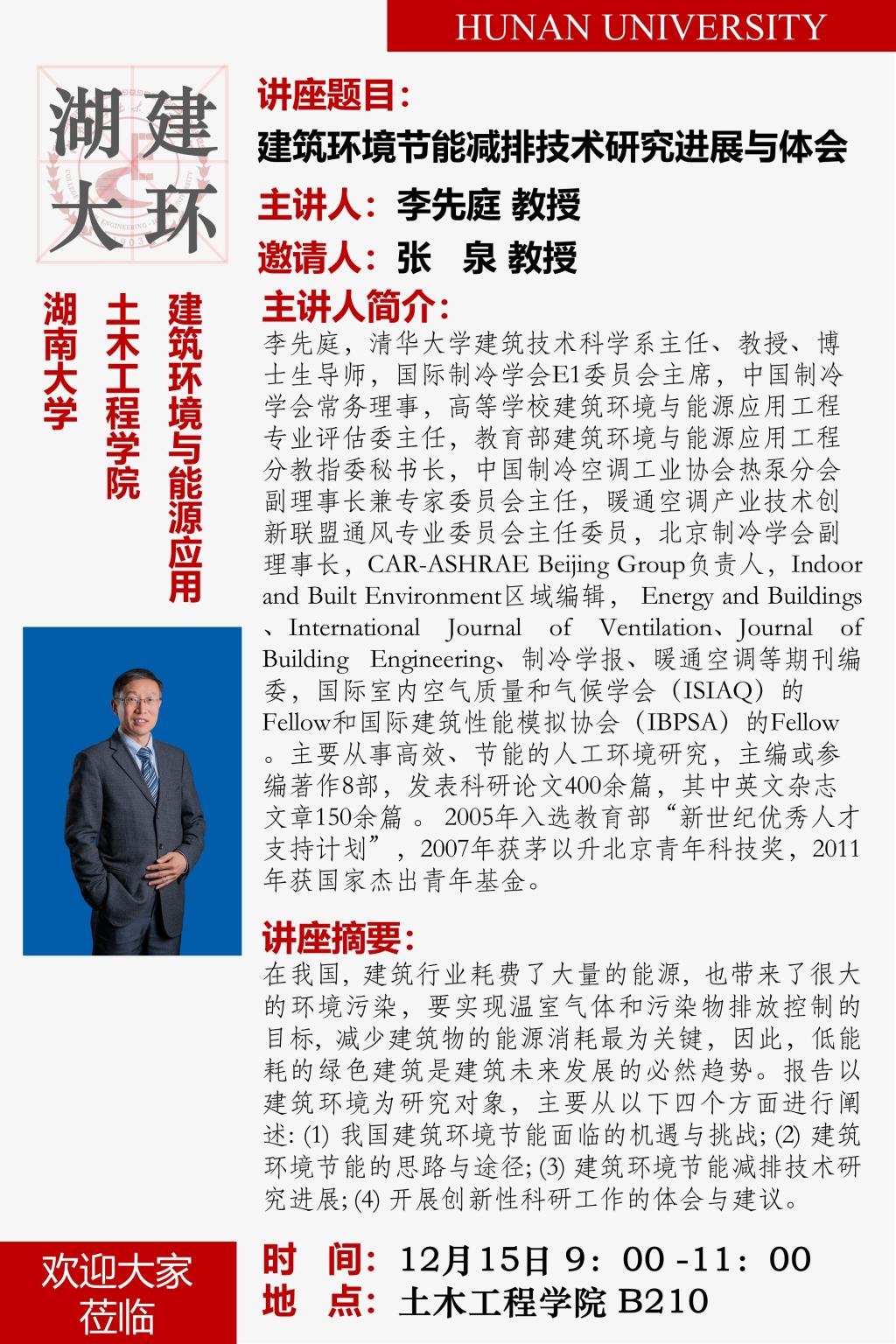 李先庭:建筑环境节能减排技术研究进展与体会