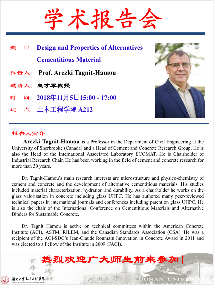Arezki Tagnit Hamou:Design and Properties of Alternatives Cementitious Material