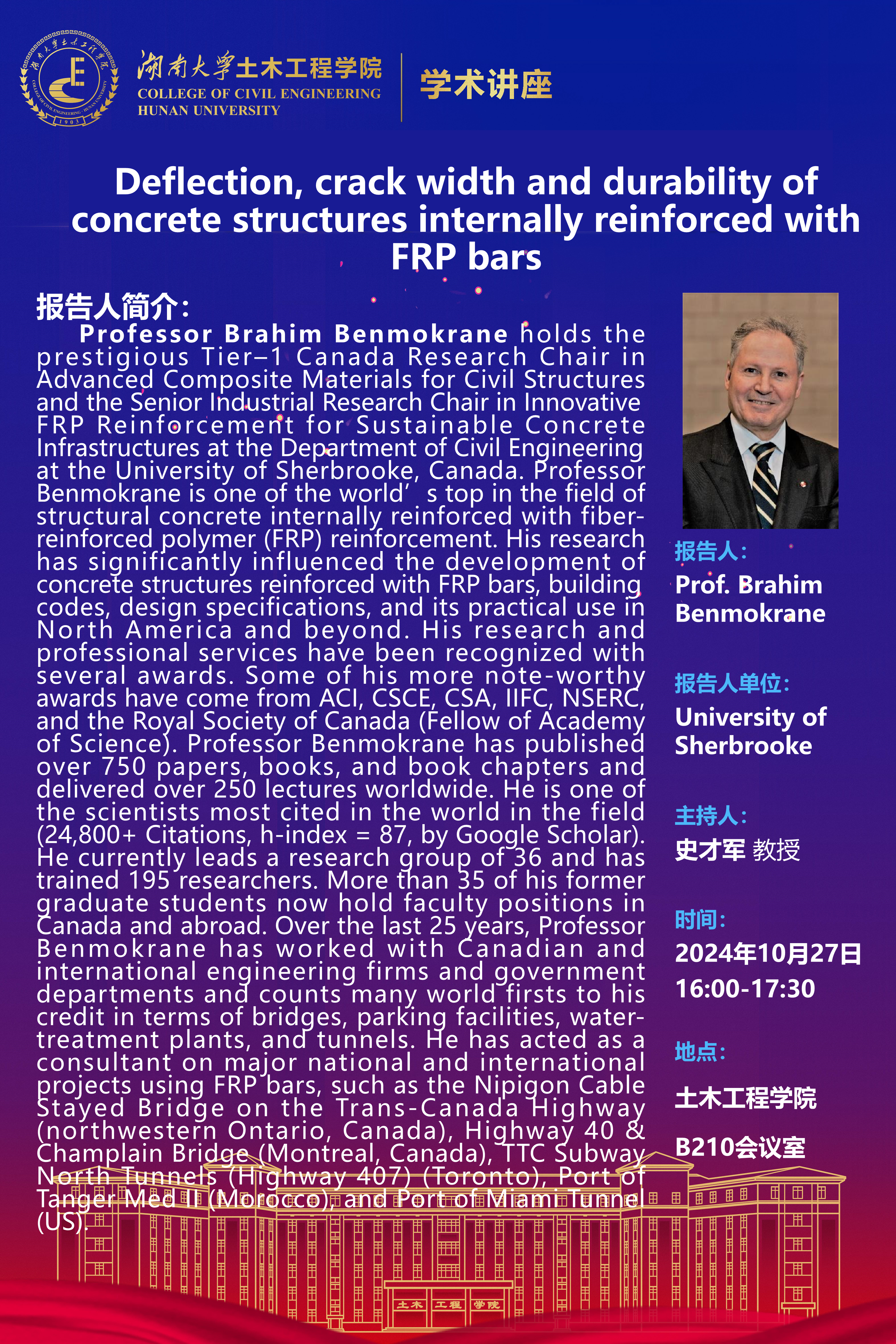 Brahim Benmokrane:Deflection, crack width and durability of concrete structures internally reinforced with FRP bars