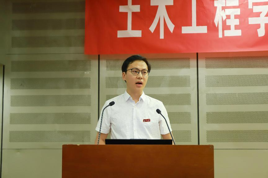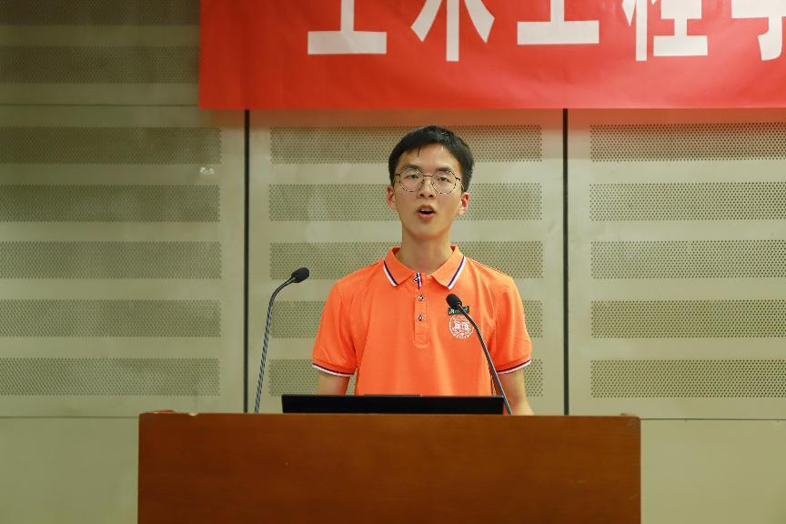 导师代表张恒龙老师分享了他在研究生期间学习和生活的心得,提出要扎实搞好学习,勇于攻坚克难,落实家国奉献,传承土木人使命。