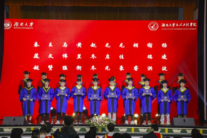 邓露在致辞中深切回望了2022届毕业生的精彩往事,他对毕业生达了祝福,他表示“希望我土木之少年,永存高远之志,不惧挫折、不畏磨难,在风雨中磨练,在拼搏中升华”。并给予了全体毕业生三点期望“第一,征程漫漫,永做党和国家的忠诚拥护者;第二,学无止境,善做知识和学问的坚定追逐者;第三,敢为人先,争做湖大精神和文化的传播者。”
