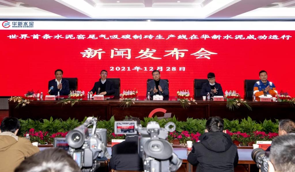 在华新武穴工业园基地联合举办了“世界首条水泥窑尾气吸碳制砖生产线在华新水泥成功运行”的新闻发布会。据了解,这是世界首条利用CO2生产混凝土制品的生产线。