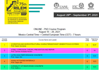 8月16-28日,国际材料与结构研究实验联合会(RILEM)的第75届秋季年会由墨西哥新莱昂自治大学(Universidad Autonoma de Nuevo León)通过线上方式承办,RILEM在每次的年会上开设一些国际博士生课程,让博士生和有兴趣的科研人员共享一些大家关注领域的知识和研究成果。本届会议设立了5门博士课程,无码卡通