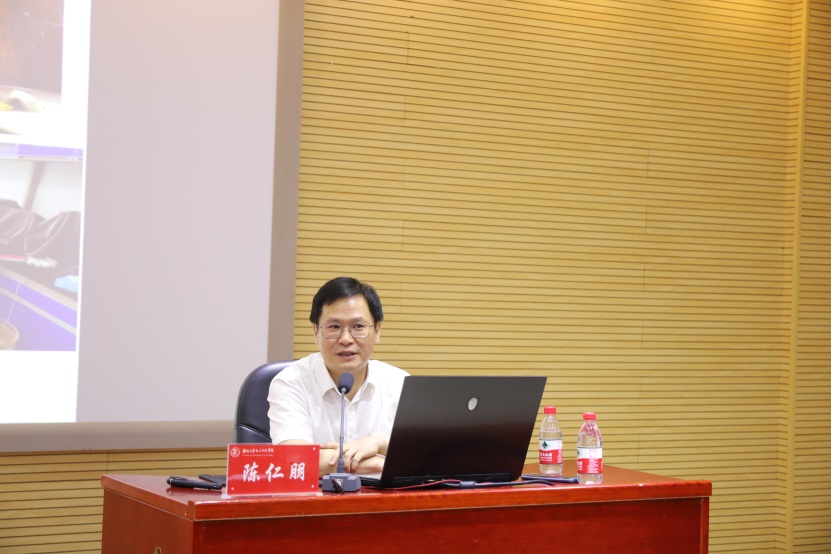 校长助理陈仁朋做岩土工程前沿主题报告。报告从研究生能力培养、岩土工程新进展两个方面进行了阐述。