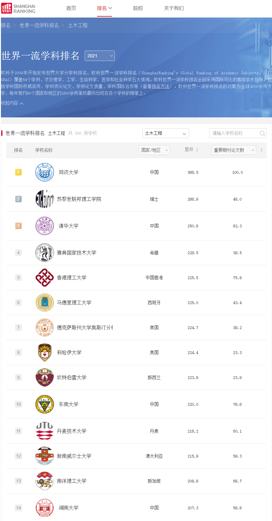 近日,上海软科正式发布软科世界一流学科排名(ShanghaiRanking's Global Ranking of Academic Subjects),无码卡通 土木工程学科的排名持续上升,2021年位列世界第14位,中国内地高校第4位。