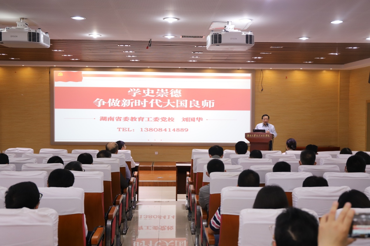 开展“学史崇德”教职工政治学习活动,邀请省委教育工委党校常务副校长刘国华教授做《学史崇德,争做新时代大国良师》专题报告。报告会由党委书记彭嘉芬主持,全体教职工参加。