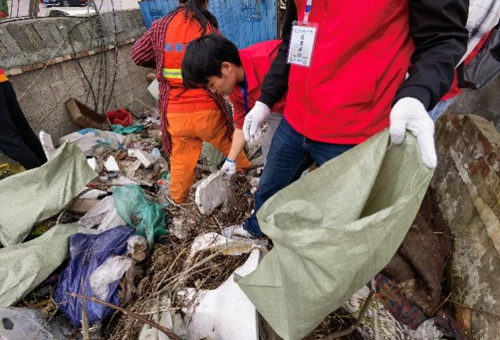 图2:志愿者清理河堤垃圾