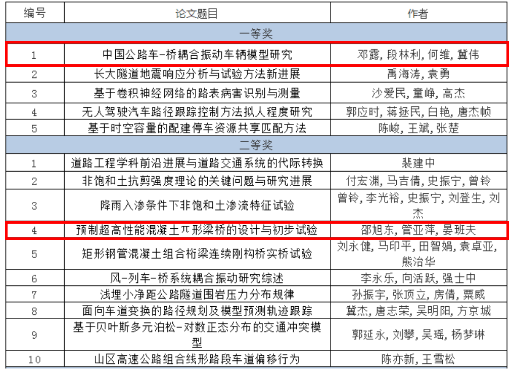 邓露教授团队发表的《中国公路车-桥耦合振动车辆模型研究》论文荣获一等奖,邵旭东教授团队发表的《预制超高性能混凝土π形梁桥的设计与初步试验》论文荣获二等奖。以上获奖成绩表明无码卡通