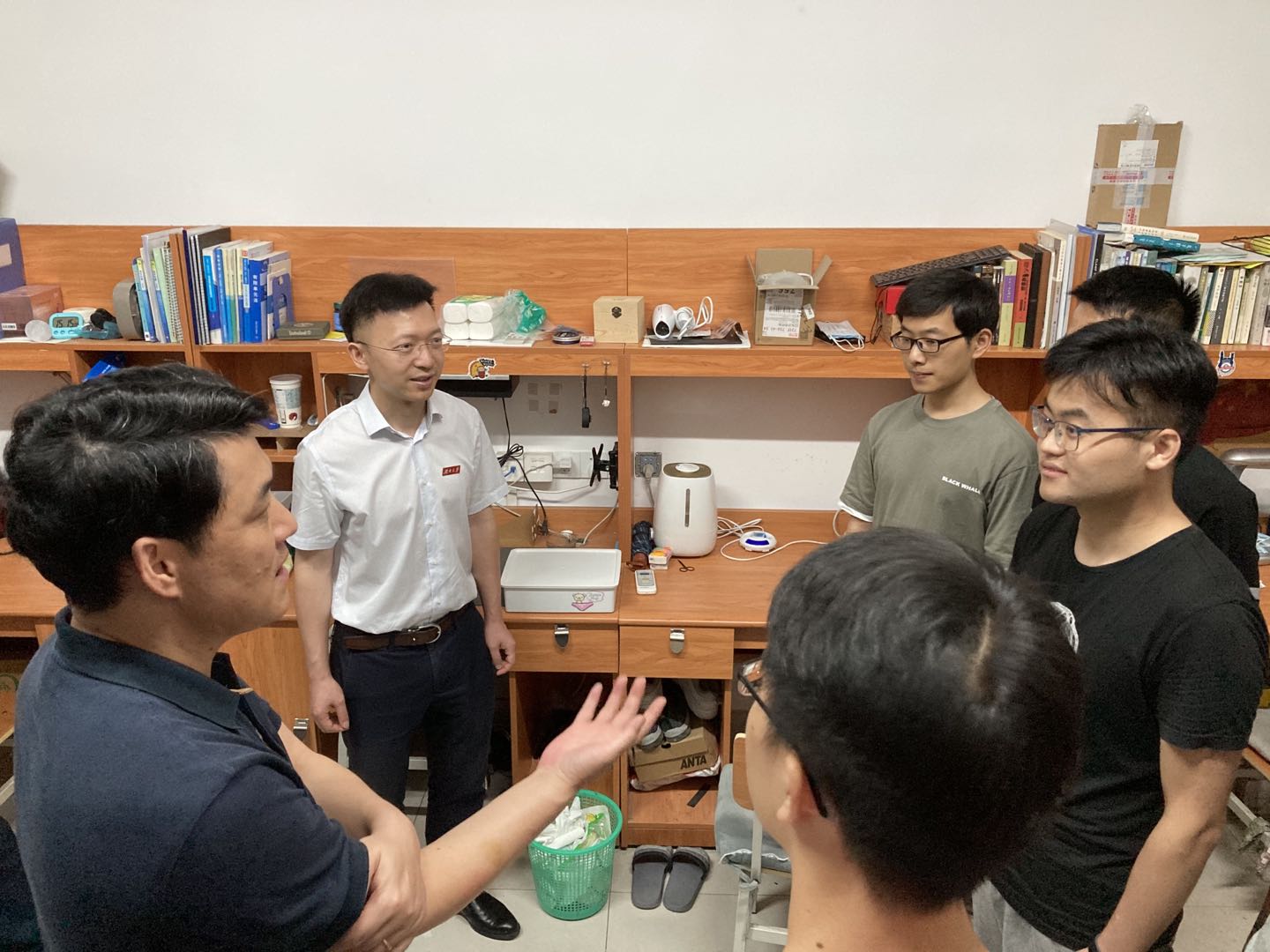 徐国正走进宿舍与毕业生们亲切交谈,关心询问同学们学习生活和就业工作等情况,交流展望未来前景,祝福毕业学子们前程似锦,勉励同学们继承和发扬母校优良传统,砥砺青春,矢志奋斗,以青春之我、奋斗之我,为祖国建设添砖加瓦。