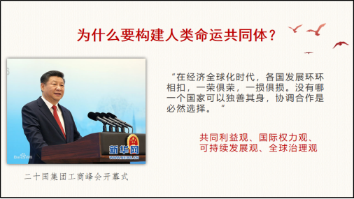 辅导员彭薪羽的开学第一课:《并肩战“疫”,共建人类命运共同体》。
