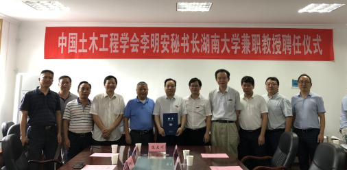 9月21日上午,中国土木工程学会秘书长李明安受聘为我校兼职教授。聘任仪式在学院南楼会议室举行,施周书记为李明安秘书长颁发聘书并佩戴校徽。中国工程院院士陈政清、学院领导及部分教师出席仪式。陈仁朋院长主持仪式。
