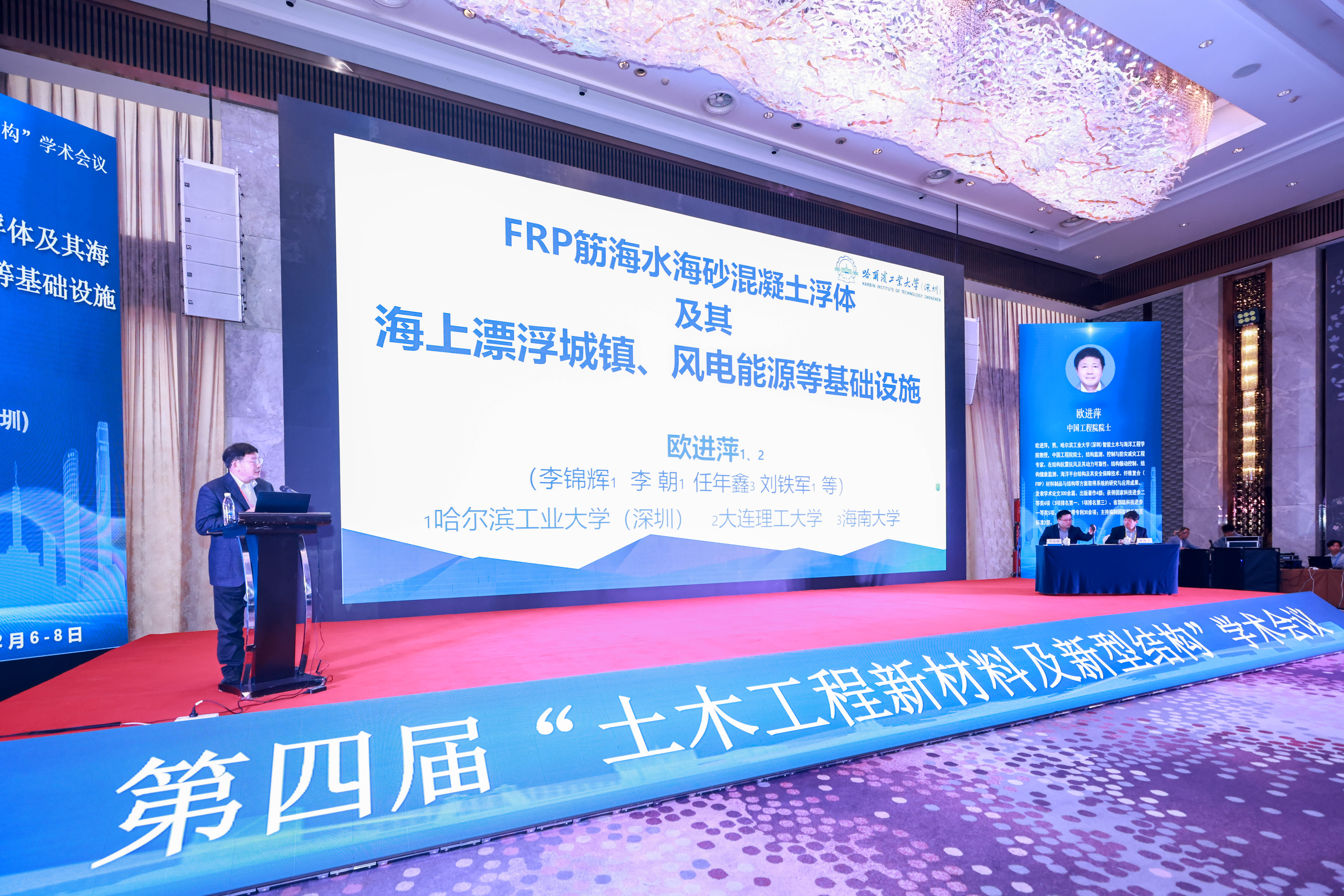 欧进萍院士作题为《FRP筋海水海砂混凝土浮体及其海上漂浮城镇、风电能源等基础设施》的主题报告。