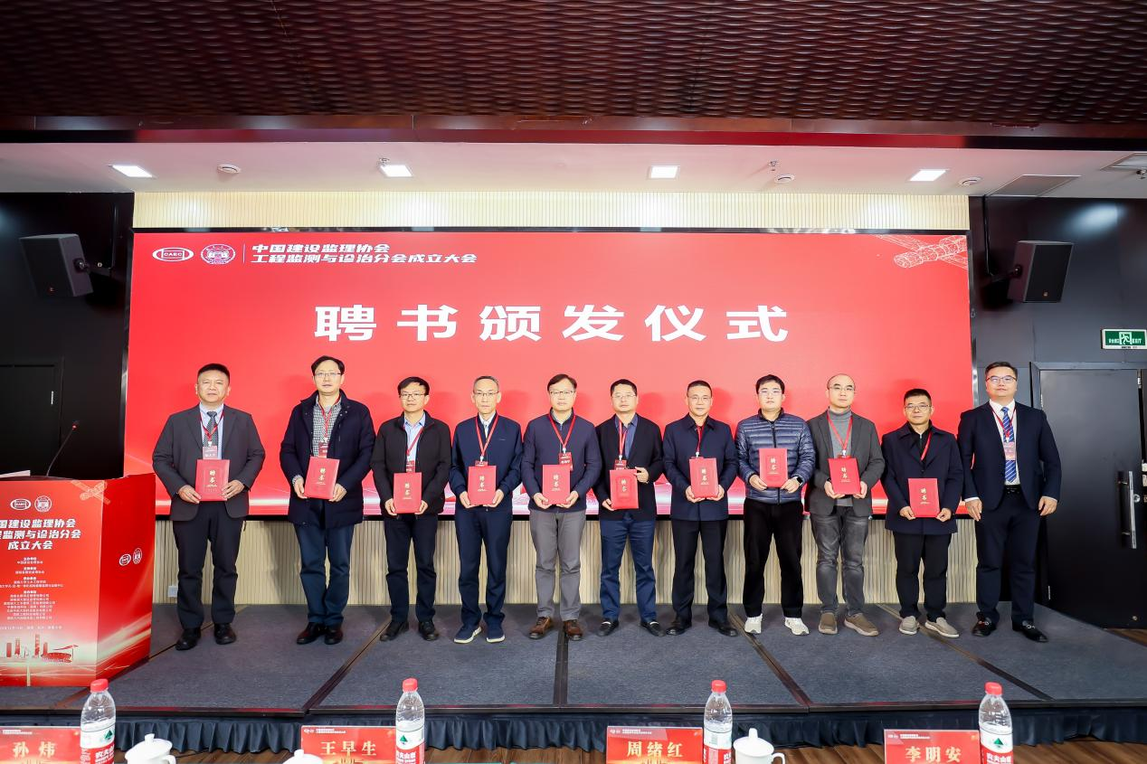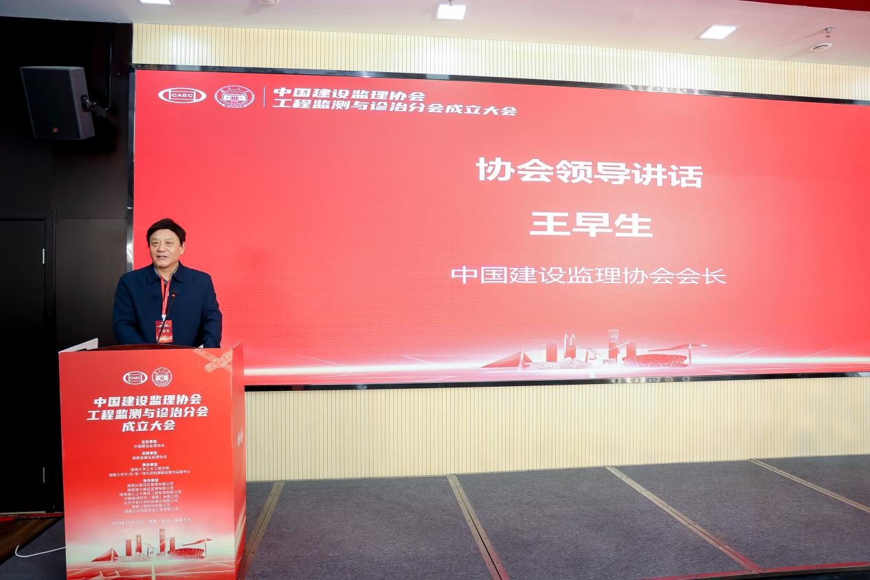 周云做就职讲话,感谢中国建设监理协会对工程监测与诊治分会的支持,介绍了分会成立的意义并对未来工作提出初步设想。刘文对分会的成立表示祝贺,希望分会的成立能进一步促进高校科研成果与企业实际需求的深度对接,共同推动工程监测与诊治技术的创新发展与应用推广。王早生表示,全体成员应凝心聚力、砥砺前行,共同开创工程监测与诊治行业的辉煌未来。