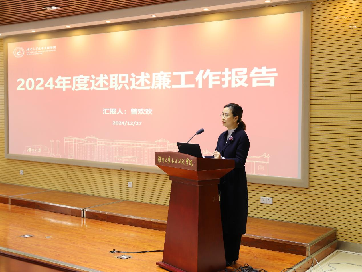 曾欢欢从分管具体工作以及自身建设等方面进行了总结报告,回顾了2024年在学生工作、校友工作、宣传工作等方面取得的成效,指出要用情服务学生、用心引领学生、用力帮助学生,提振学生专业信心,并表示将继续围绕学院发展目标,努力推动学院工作再上新台阶。