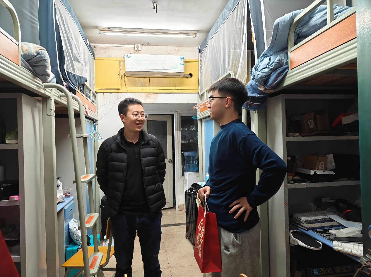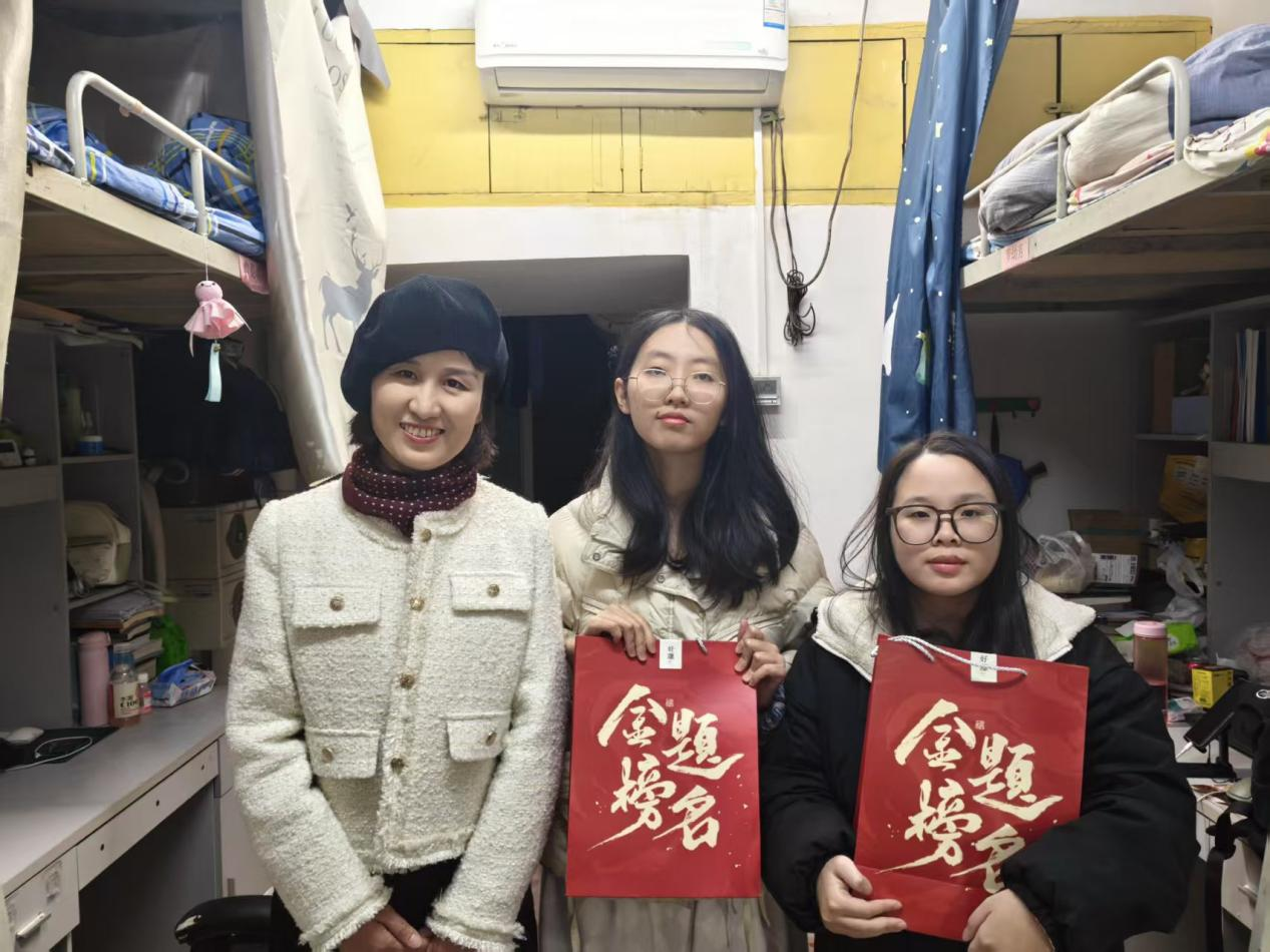 学院领导、辅导员及学生志愿者深入宿舍,为即将踏上考场的同学们送上暖心慰问与诚挚祝福。在宿舍里,老师们仔细询问大家的复习进度、备考状态及生活需求,耐心解答同学们在冲刺阶段遇到的学习困惑与心理压力。鼓励同学们调整心态、沉着应战,以扎实的专业积累和从容的应考状态奔赴考场,同时叮嘱大家注意劳逸结合,保持良好的身心状态。