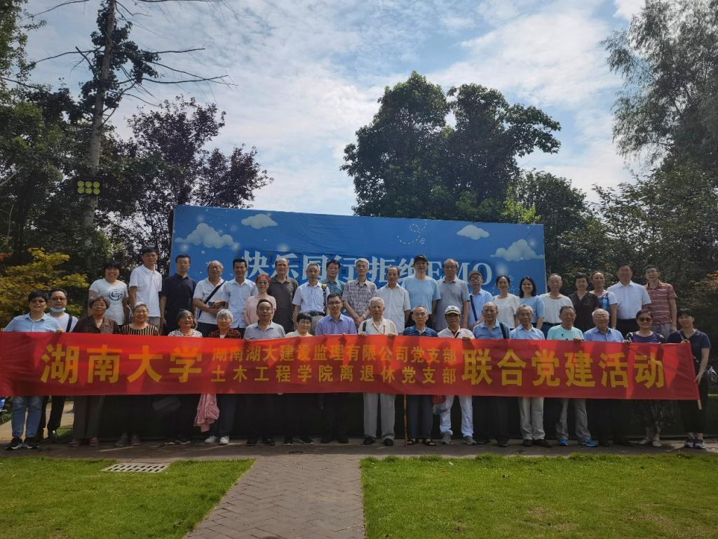 6月29日上午,雨后天晴,空气清新,土木学院离退休第一、第二支部与湖南湖大建设监理有限公司支部党员进行联合支部活动,开展颂党恩,迎七一党建活动。参加活动的有土木学院党委副书记周石庆,湖南湖大建设监理有限公司董事长姜早龙、总经理金波。联合党建活动由土木学院离退休第一支部书记邓铁军主持。