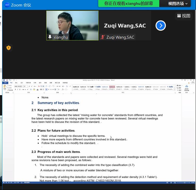 此外,中国代表团积极参与标准ISO 22965《混凝土》第1部分、第2部分修订工作以及特设工作组AHG1“再生骨料及再生骨料混凝土”关于新国际标准提案《混凝土用再生骨料》的讨论,积极参与相关领域的国际标准化工作。